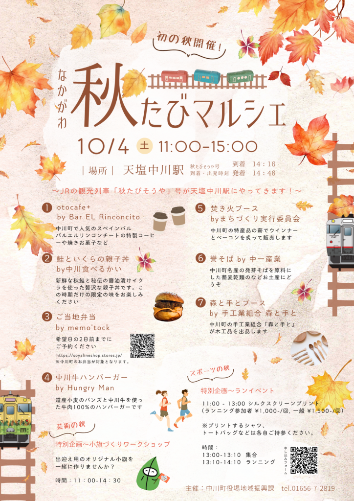 あわせて、10月4日(土)には天塩中川駅で「秋たびマルシェ」も行います!