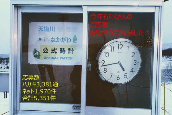 天塩川春発信解氷クイズへたくさんのご応募いただき、ありがとうございました。 本日標識木に取りつけていた時計が止まり、春の扉が開きました。     公式時間は...